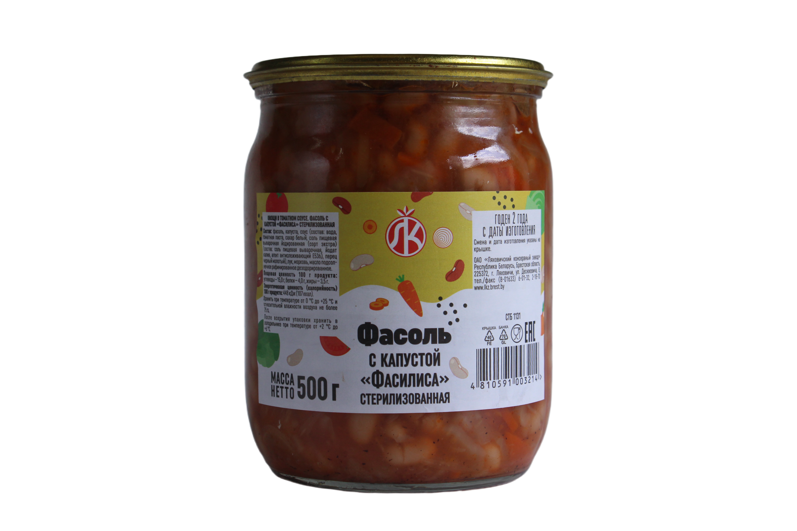 Фасоль с капустой «Фасилиса» (500 г) — это готовая стерилизованная овощная закуска от ОАО «Ляховичский консервный завод» (Беларусь). Продукт представляет собой сочетание бобовых и овощей в томатной заливке, полностью готовое к употреблению.