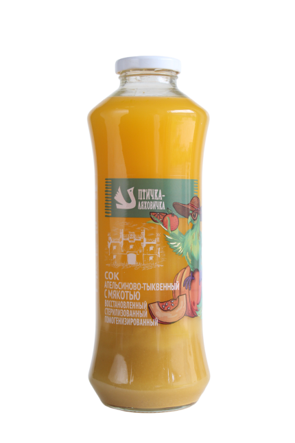 Сок апельсиново-тыквенный с мякотью восстановленный стерилизованный (750 мл) — это натуральный комбинированный напиток, выпускаемый ОАО «Ляховичский консервный завод» (Беларусь). Продукт